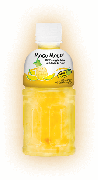 A unique combination of real fruit juice and chewy nata de coco makes Mogu Mogu a delicious, healthy, and fun beverage experience.